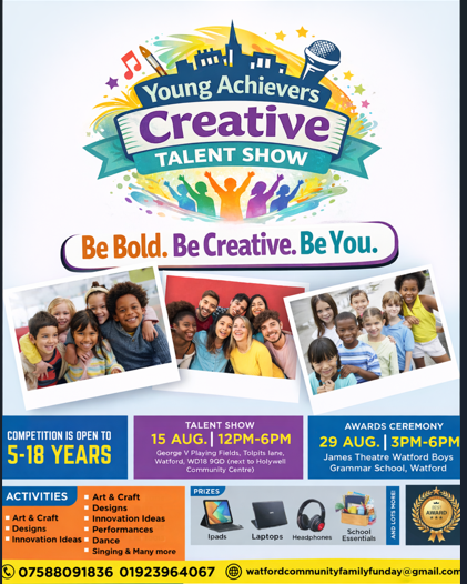 On Saturday, 15th August 2026, we invite you to experience an incredible day filled with live music, performances, delicious food, and non-stop entertainment at our stunning venue George V Playing Fields a Beautiful Park in Watford.